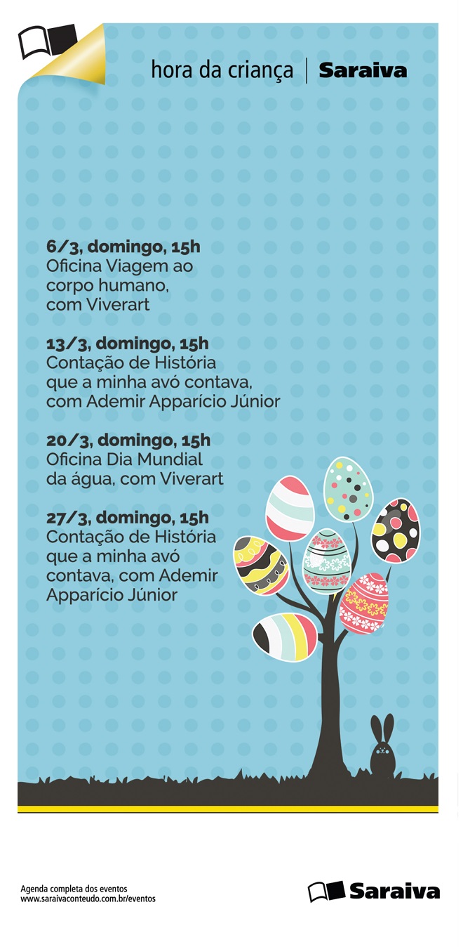 O Shopping Santa Úrsula e a Livraria Saraiva prepararam um programação especial para o mês de março, voltada para o público infantil. Todos os domingos do mês, sempre às 15h, acontece a Hora da Criança, gratuitamente, no Pátio Central do Centro de Compras, com contação de histórias e oficinas recreativas.