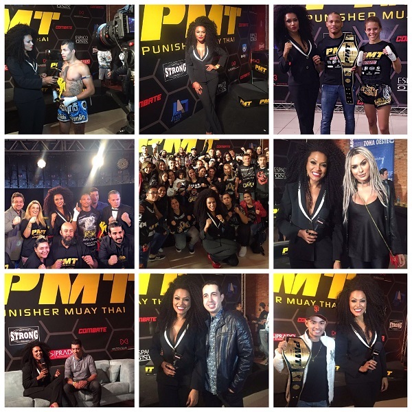 Adepta da malhação e a luta de muay thai, a jornalista e rainha de bateria Simone Sampaio, que desfila pela escola de Samba Dragões da Real no carnaval de São Paulo, foi convidada para realizar as entrevistas durante o evento deste último domingo, as quais serão exibidas no canal Combate.
