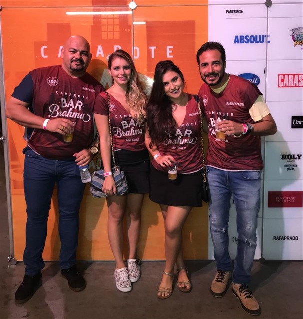 Os empresários Gustavo César Ferreira e Diógenes Polin vieram de Ribeirão Preto (SP) para o Carnaval de São Paulo e se hospedaram no WZ Hotel Jardins. Acompanhados da nutricionista Letícia Neves e da dentista Carolina Hennrick, eles estiveram no Sambódromo no sábado de carnaval e curtiram cada atração do Camarote Bar Brahma.