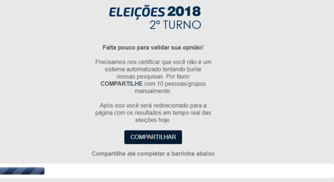 Falsas pesquisas de intenção de voto circulam pelo WhatsApp com a intenção de roubar dados pessoais e informações contido no celular. Desde a última quarta-feira (10), foram identificados pelo menos sete links para supostos questionários do Ibope e do Data Folha.