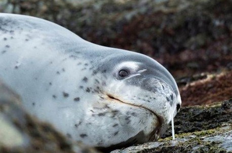 A foca-leopardo é a maior das focas que vivem na Antártida, pode medir mais de 3 metros e pesar mais de 500 kg.