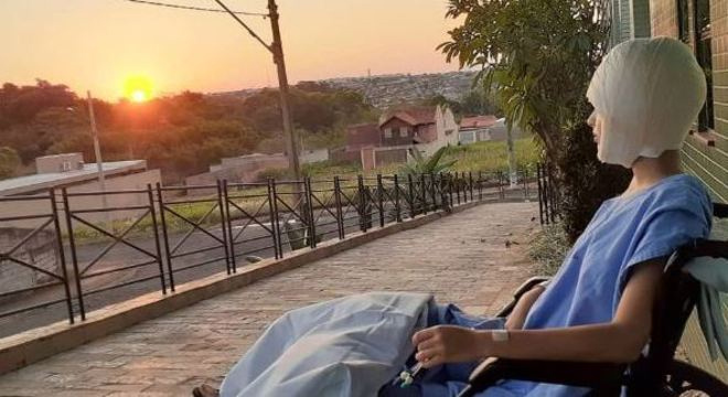 "Já sinto até minha cabeça coçar de vez em quando", disse ela em um vídeo gravado no hospital ao lado do noivo Eduardo Tumajan. "Penso que poderia ter acontecido uma coisa muito pior comigo, mas não aconteceu. Hoje estou aqui conversando e andando, me sentindo muito bem", afirma.