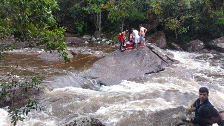 Os banhistas que estavam no local foram surpreendidos, tanto que seis pessoas ficaram ilhadas sobre as pedras e sem conseguir chegar de volta à margem. Elas foram resgatadas pela equipe do helicóptero Arcanjo, que utilizou técnicas de salvamento em águas rápidas, incluindo equipamentos como coletes e cordas, para passar com os banhistas pela correnteza e retirá-los da água.
