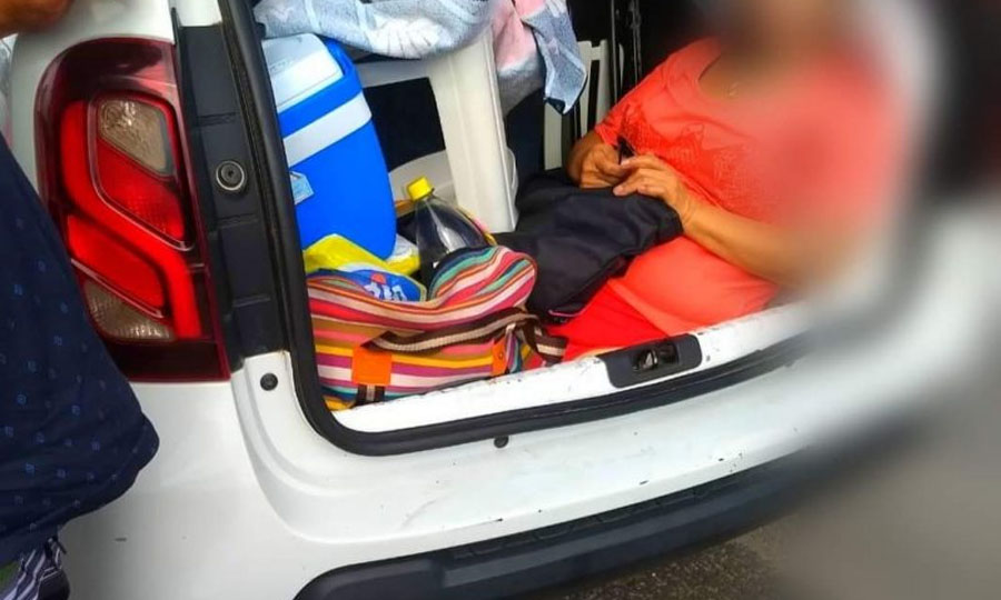 Sogra é transportada no porta-malas por família de turistas argentinos – Foto: PMRv/Divulgação/ND |