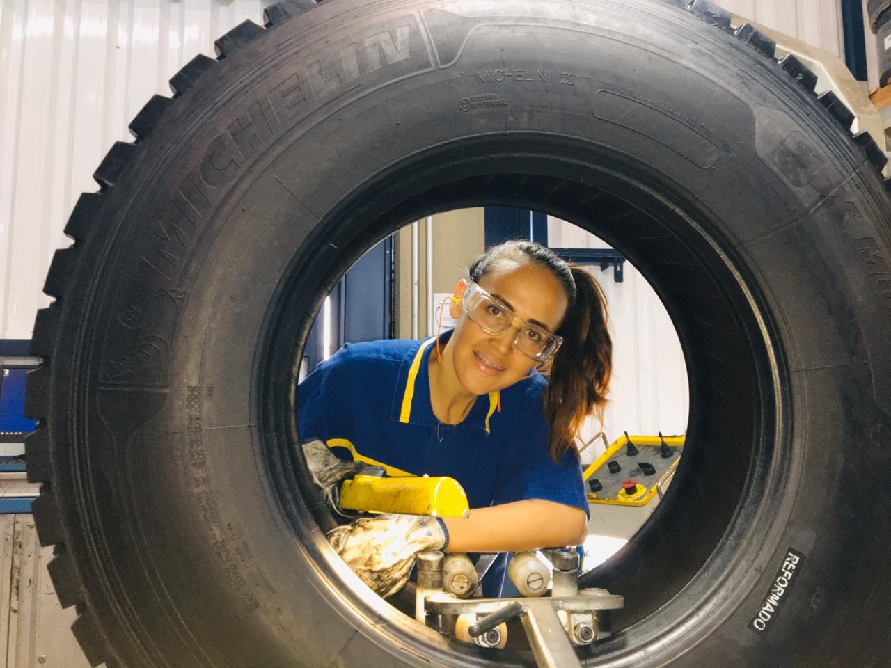 A profissional Valéria Lima, 35 anos, também atua na área de raspagem, na Ribeirão Diesel Pneus, unidade de Bauru (SP), e relata uma história de superação e conquistas. Solteira, perdeu os três filhos: trigêmeos, ainda em processo de gestação. Antes de atuar no Grupo, Valéria vendia marmitas fitness. “Parei de fazer as marmitas para entrar no Grupo Stéfani, em 2018, para trabalhar no posto de roletagem – “a cereja do bolo”, na área de pneus. É ela quem, depois de todo o processo de recapagem, insere a banda no pneu, que deve ficar alinhada no acabamento final. Como limitação do seu trabalho, assim como no caso de Érica, Valéria comenta que a única diferença dela para os homens, é a força física, já que, em muitos casos, lida com equipamentos pesados: 15, 20 e até 30 kg - dependendo do modelo da banda. “Trabalho com mais 12 homens e um ajuda o outro em nosso setor. Temos uma relação de parceria, respeito e profissionalismo”, descreve.