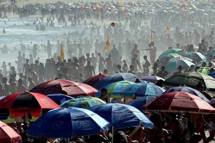 Nas praias de Copacabana houve movimentação e permanência dos banhistas na areia. No local, alguns jovens sequer usavam máscaras enquanto praticavam futevôlei. Vendedores ambulantes - estes respeitando a determinação da prefeitura - também estiveram na praia. Também houve aglomerações na praia do Leblon. Muitas pessoas, inclusive, não usavam máscaras. A praia de Ipanema também esteve movimentada e repleta de banhistas na tarde de domingo. A determinação da prefeitura do Rio está em vigência desde o início do mês.