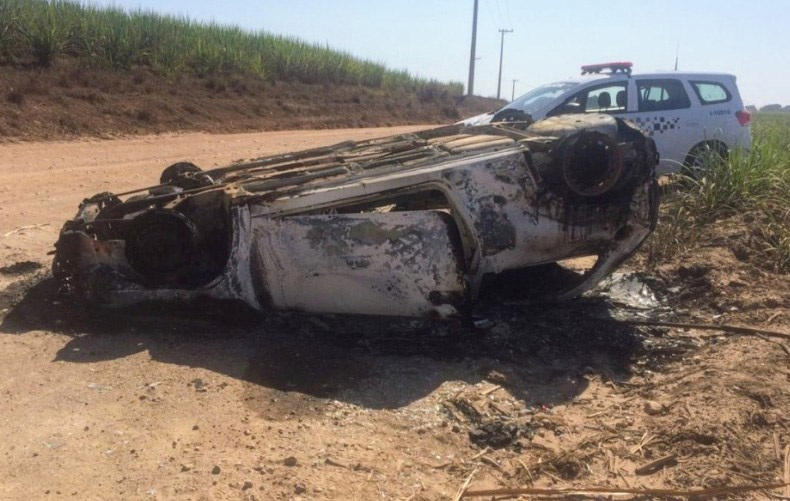 | Polícia localizou carro incendiado do acusado (Divulgação/Polícia Rodoviária) |