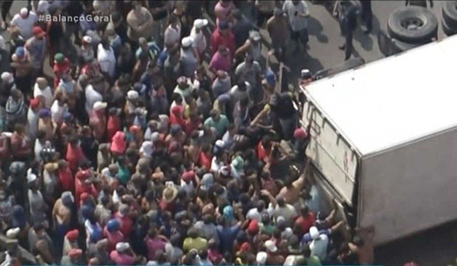 Logo após o acidente, a Record TV mostrou que o veículo foi saqueado. Com a chegada Polícia Rodoviária Federal, os saques foram interrompidos e uma aglomeração se formou para aguardar a reestabilização do veículo.