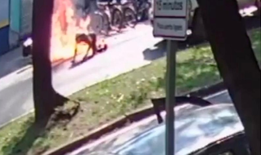 Um idoso, de 69 anos, caiu com a motocicleta na avenida e, ao tentar retirar a moto da pista, a motocicleta começou a pegar fogo. Em poucos segundos houve uma explosão e o idoso foi atingido. O acidente ocorreu nesta sexta-feira na Avenida Dr. Alexandre Rasgulaeff, no Jardim Alvorada, em Maringá-PR.