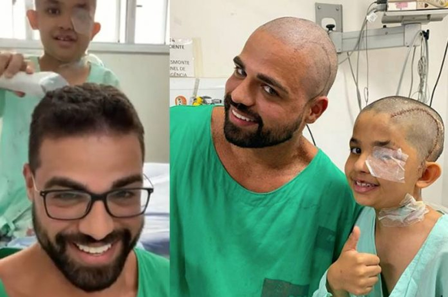 “Eu acompanho o Pedro desde o ano passado. Ele tem um tumor raro na cabeça que é benigno, mas tem comportamento de maligno pelo nível alto de proliferação. A gente tira e ele cresce. Ele já passou por 11 cirurgias desde 2019. Na última, eu disse que ia ter que cortar o cabelo dele de novo e se ele quisesse eu cortaria o meu também. Terminada a cirurgia eu falei: “se você ficar bem, eu vou cortar o meu cabelo”.