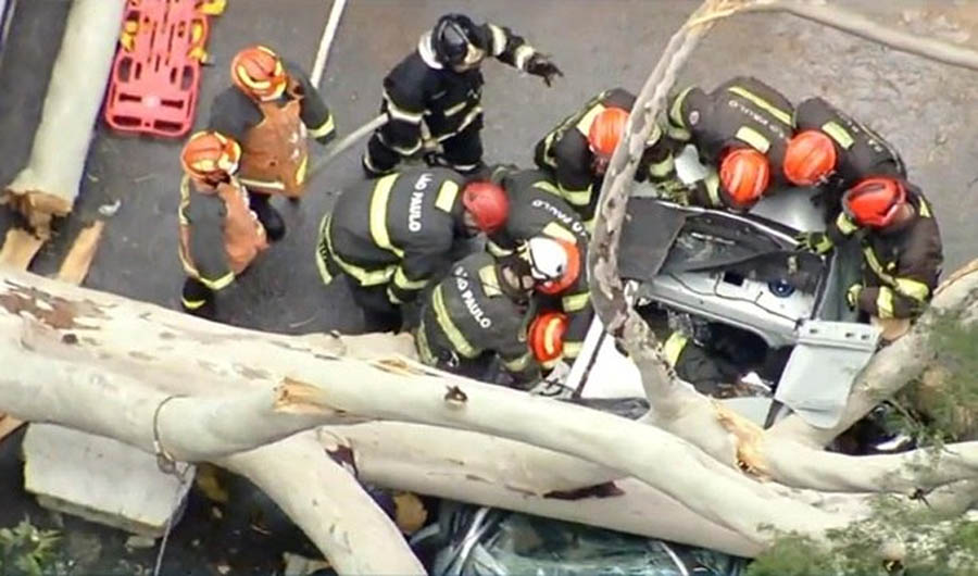 Uma árvore caiu sobre um carro onde estava uma família, prendendo três pessoas e matando uma mulher dentro do veículo na rua Doutor Thirso Martins, número 32, na Vila Mariana, zona sul de São Paulo, depois do temporal que atingiu a cidade de São Paulo, nesta terça-feira (1°).