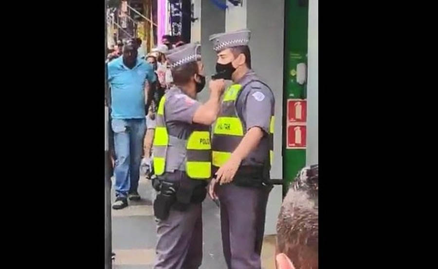Vídeos que circulam nas redes sociais mostram dois policiais durante uma briga da Santa Efigênia, no centro de São Paulo, nesta sexta-feira (4). Nas imagens um agente chega a apontar uma arma para o rosto do colega.