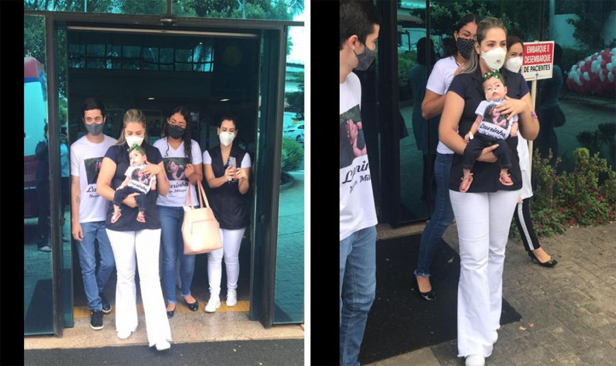 Ao deixar o hospital, acompanhada de alguns profissionais, a bebê foi recebida com palmas e centenas de balões de gás por familiares e amigos, que usavam camisas com a frase “Laurinha nosso milagre”.
