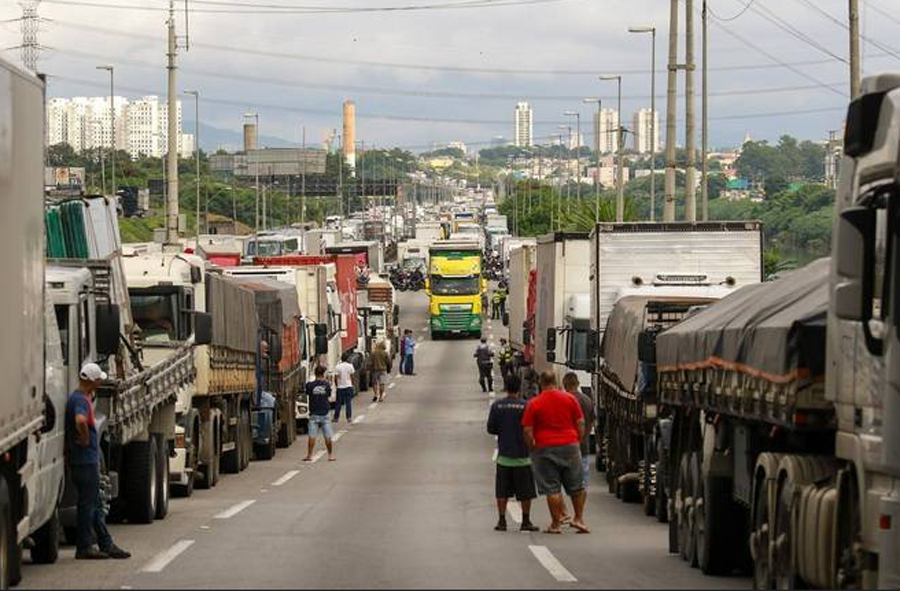 Caminhoneiros interditam pelo menos dois pontos da capital na manhã desta sexta-feira (5) em manifestação contra as medidas de restrição impostas pelo governador João Doria para tentar conter o avanço da covid-19 em São Paulo.