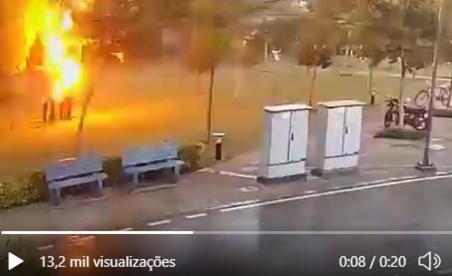 Câmeras de segurança flagraram, na última sexta (12/03), quatro pessoas sendo atingidas por um raio em um parque na cidade de Gurugram, na Índia". O grupo se refugiou da chuva embaixo de uma árvore em um parque na cidade. Uma câmera de segurança no local registrou o exato momento em que um raio atinge as quatro pessoas.