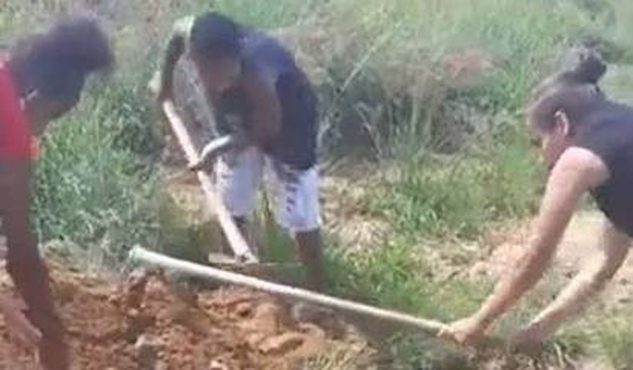 Nas imagens, é possível ouvir da pessoa que faz a gravação que o grupo está enterrando a própria mãe.