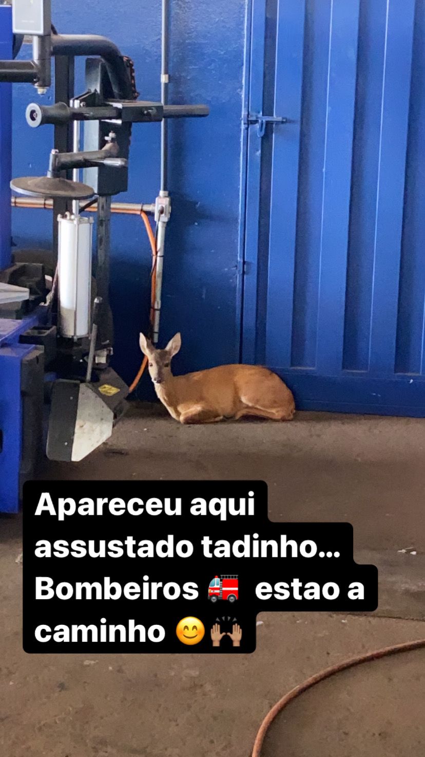 Uma borracharia localizada em Brodowski foi invadida por uma fêmea de veado e resgatado pela Defesa Civil da cidade
