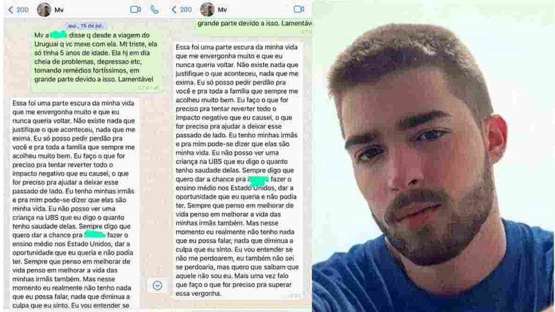 Mensagens trocadas entre Marcos e a madrasta - que é mãe das meninas - revelam que ele confessou o crime. No relato atribuído a ele, o estudante diz que "foi uma parte da minha vida que me envergonha muito [...] não existe nada que justifique o que aconteceu [...] eu só posso pedir perdão para você e toda a família que me acolheu muito bem", disse.