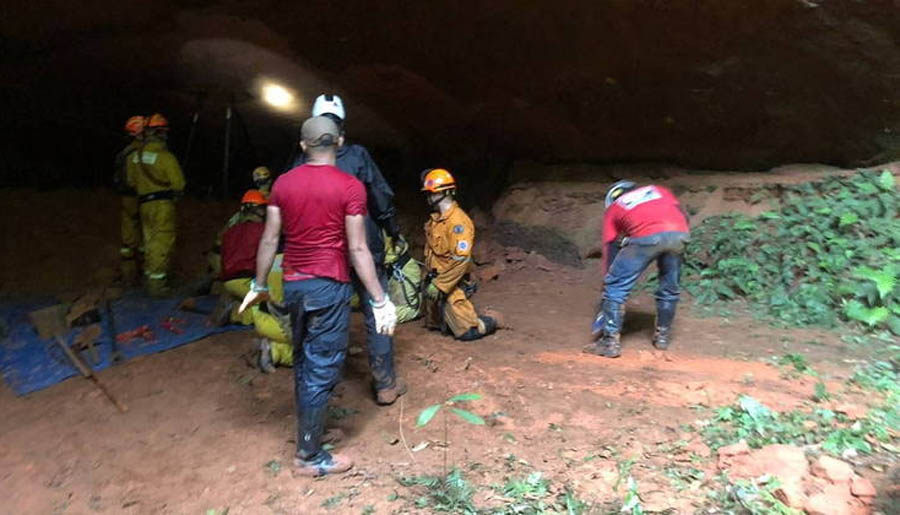 A Gruta Duas Bocas tem 28 metros de altura e cerca de 350 metros de galeriasDIVULGAÇÃO/CORPO DE BOMBEIROS |