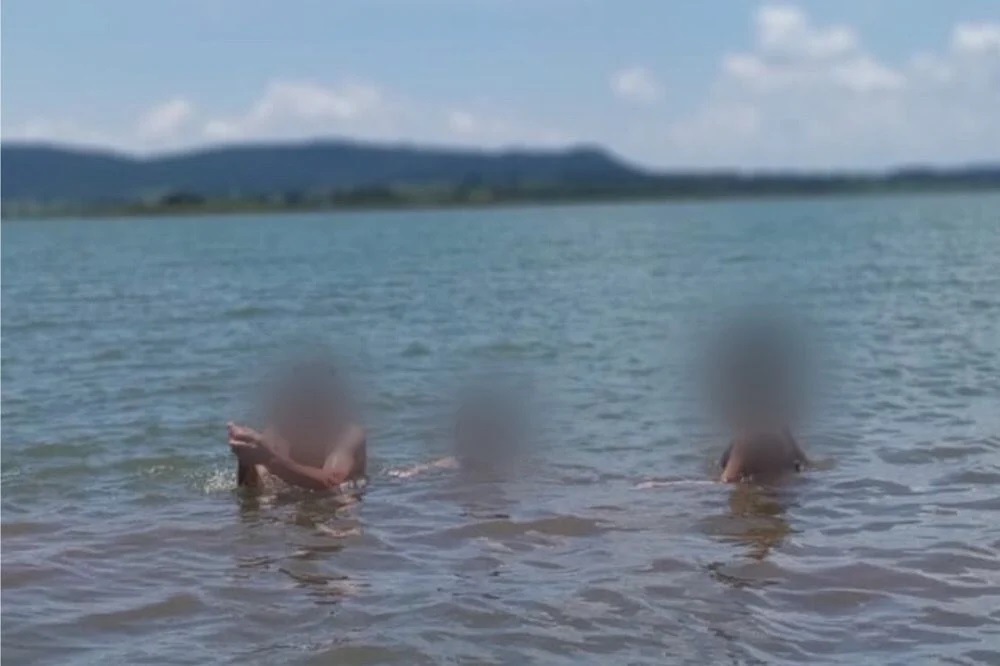 Uma pessoa que estava na beira do lago chegou a registrar momentos instantes após o ataque, quando o banhista percebe que foi mordido e segura a mão.