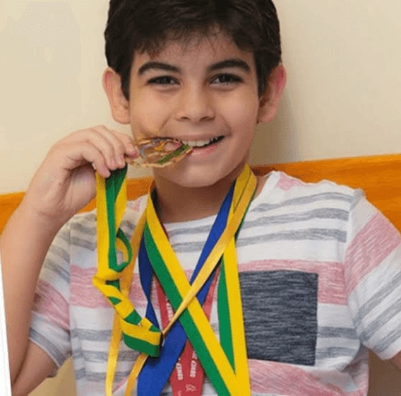 | Com 13 anos, Caio foi aprovado em 1º lugar na UFRJ. E ele coleciona grandes conquistas. | Foto: Laurismara Temponi / Arquivo Pessoal |