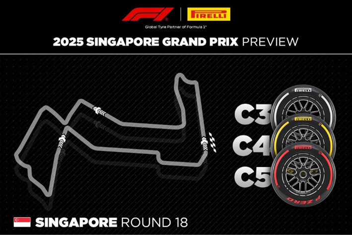 A Pirelli não fez nenhuma mudança em relação ao ano passado para os compostos de pista seca no circuito de Marina Bay, mantendo o C3 como Duro, o C4 como Médio e o C5 como Macio. Embora exista o ainda mais macio C6, quando os compostos para a segunda parte da temporada foram anunciados durante o fim de semana do GP da Hungria, as avaliações realizadas antes da pausa de verão descartaram o uso do pneu mais macio da gama de 2025. Isso porque as forças exercidas sobre os pneus e as altas temperaturas deste evento poderiam gerar problemas de superaquecimento. De fato, nesta corrida, o estresse térmico é a principal causa da degradação de performance dos pneus.