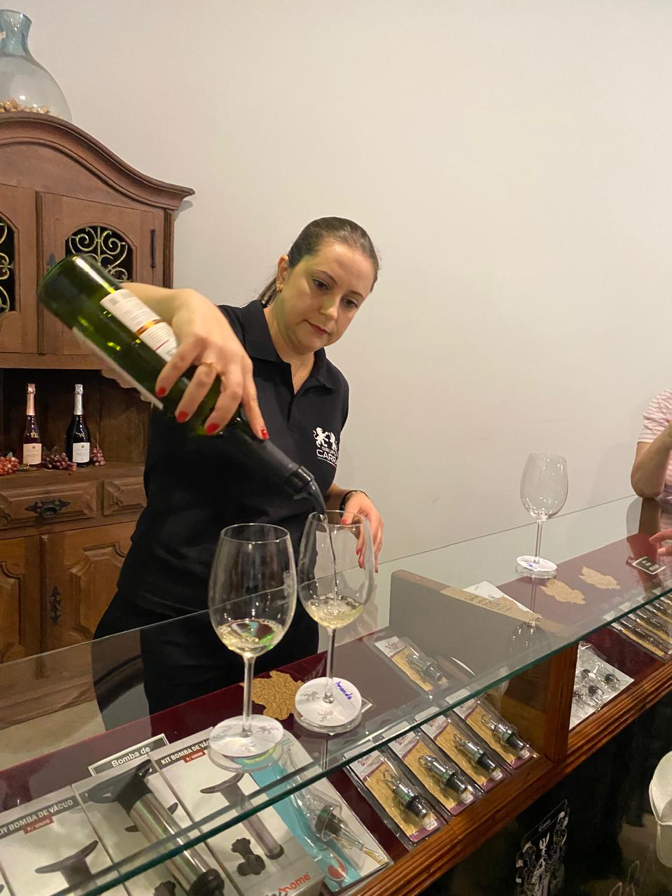 Talita Carra, integrante da quinta geração da família, recepcionou os jornalistas e explicou em detalhes a produção e conservação das bebidas.