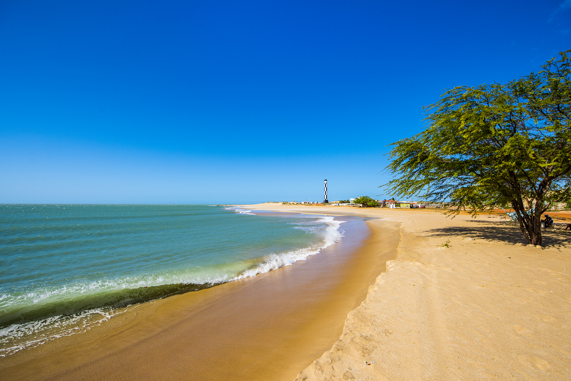 Pouco badalada, a Praia de Cacimbinhas fica no município de Tibau do Sul, no litoral sul do Rio Grande do Norte, a aproximadamente 80 km de Natal. A areia é fina e branca e o mar varia entre tons de azul-turquesa e verde- esmeralda. Sua pequena extensão – tem cerca de 600 metros de comprimento – contribui para seu charme aconchegante. O cartão-postal, no entanto, são as falésias. Com cores que variam do vermelho ao amarelo, elas criam um contraste único com o azul do mar. Na maré baixa, formam-se piscinas naturais, ideais para um banho tranquilo.