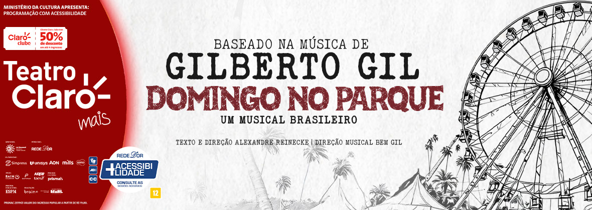 Clássico do Tropicalismo e uma das composições mais significativas na carreira de Gilberto Gil, a canção premiada Domingo no Parque vira musical negro, sob a direção de Alexandre Reinecke, um dos diretores mais atuantes do país, e direção musical de Bem Gil. O espetáculo tem sua temporada de estreia no Teatro Claro, de 3 de janeiro a 8 de fevereiro de 2026, com apresentações às quintas e sextas, às 20h; aos sábados, às 17h e às 20h30; e aos domingos, às 18h. A venda online antecipada já está aberta.