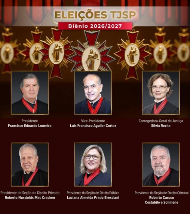O desembargador Francisco Eduardo Loureiro foi eleito presidente do Tribunal de Justiça de São Paulo para o biênio 2026/2027. O magistrado obteve 261 votos no primeiro turno, atingindo a maioria absoluta de votos do Tribunal Pleno. Também concorria o desembargador Artur Cesar Beretta da Silveira, que recebeu 91 votos. A eleição do TJSP e da EPM foi realizada hoje (12), da zero hora ao meio-dia, por sistema online, e todos os integrantes do Conselho Superior da Magistratura foram eleitos em primeiro turno. O anúncio ocorreu no Salão dos Passos Perdidos do Palácio da Justiça, logo após o período de votação, conduzido pelo presidente Fernando Antonio Torres Garcia, auxiliado pelo presidente do TJSP no biênio 2022/2023, desembargador Ricardo Mair Anafe, na presença de integrantes do Tribunal Pleno, juízes, servidores e público em geral.