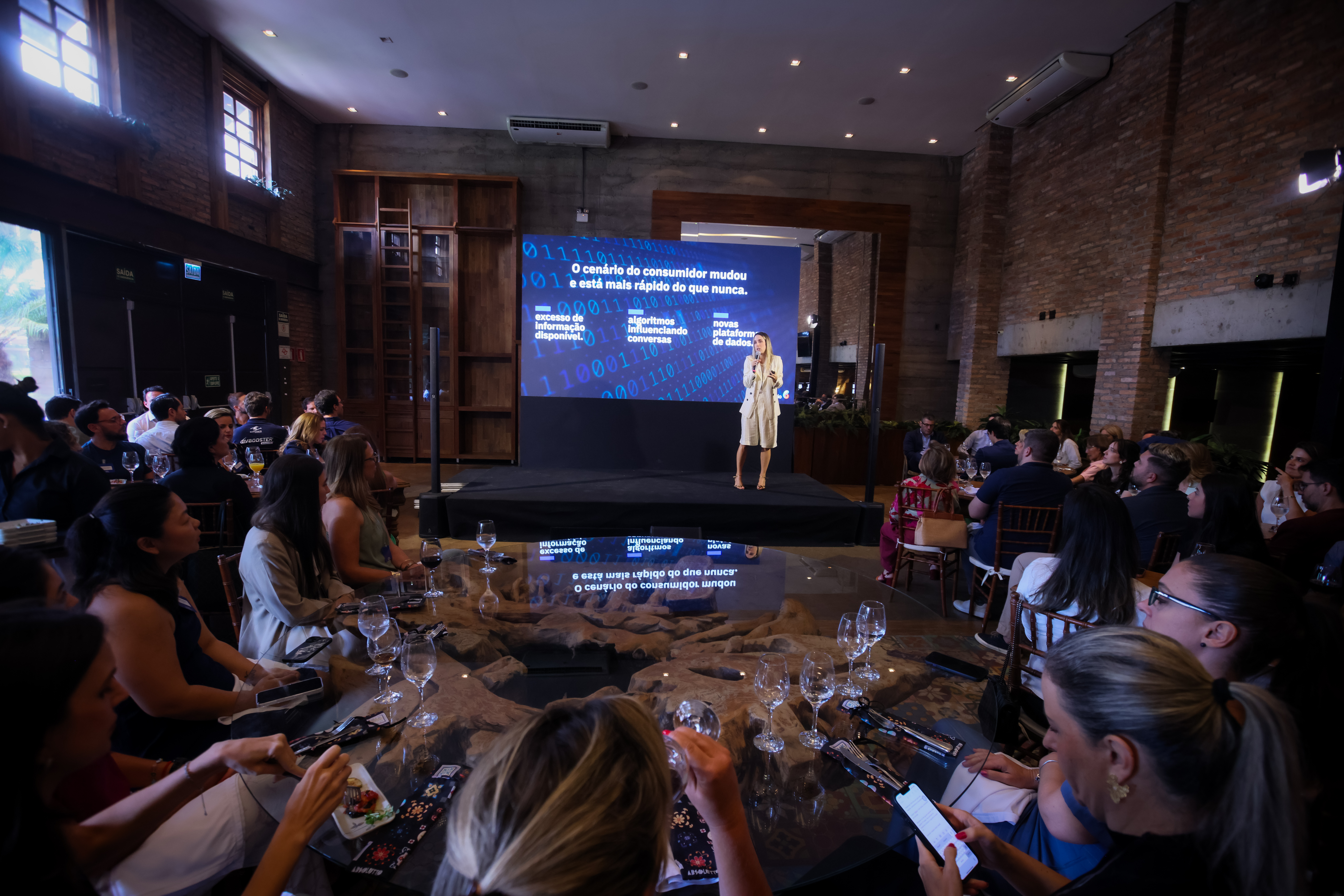 Durante o encontro, Renata compartilhou aprendizados de sua trajetória dentro de uma das maiores organizações do Brasil e destacou que a alta performance nasce de ambientes de confiança, autonomia e diversidade real dentro das equipes, elementos que sustentam a construção de marcas fortes.