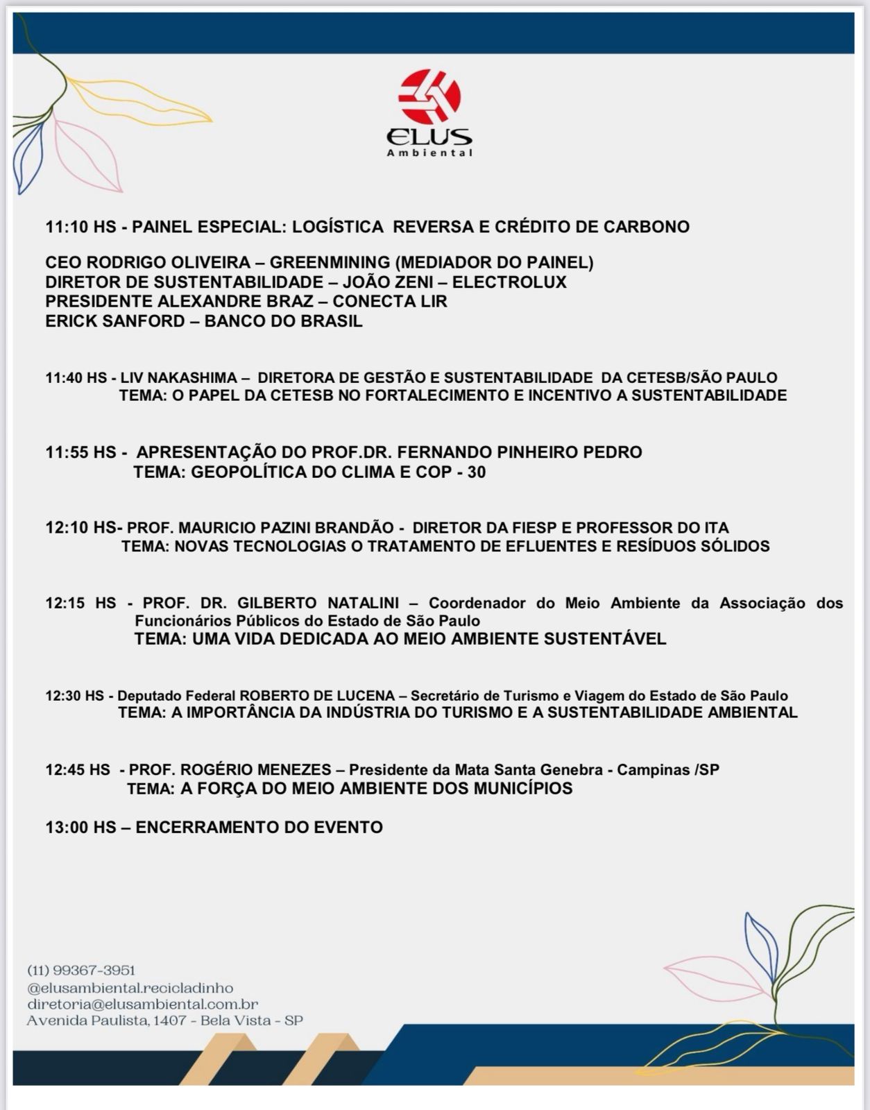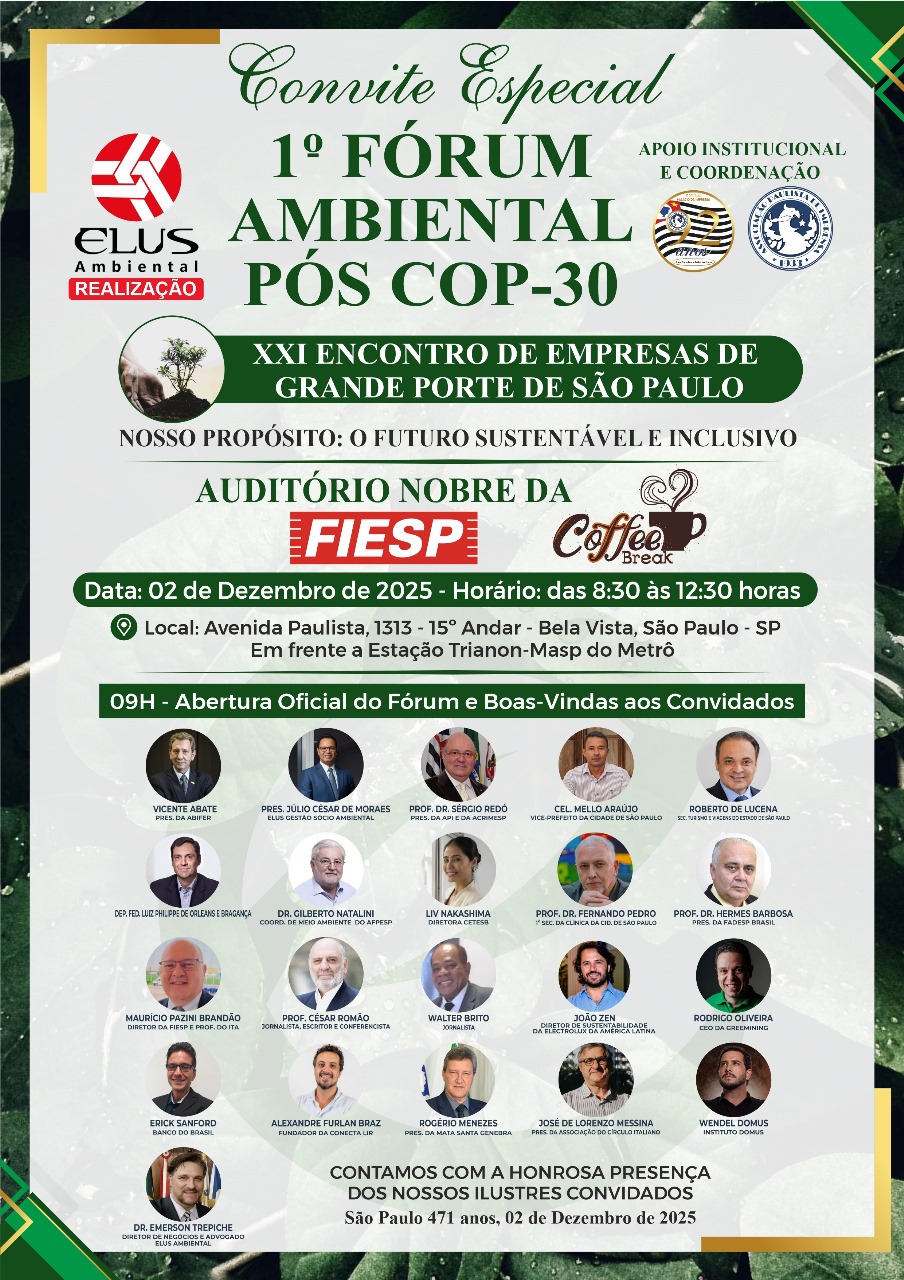 Organizado pela Elus Gestão Socioambiental, com apoio institucional da Associação Paulista de Imprensa (API), o Fórum integrou também o XXI Encontro de Empresas de Grande Porte de São Paulo, reunindo lideranças empresariais, autoridades públicas, especialistas, acadêmicos e organizações do terceiro setor.