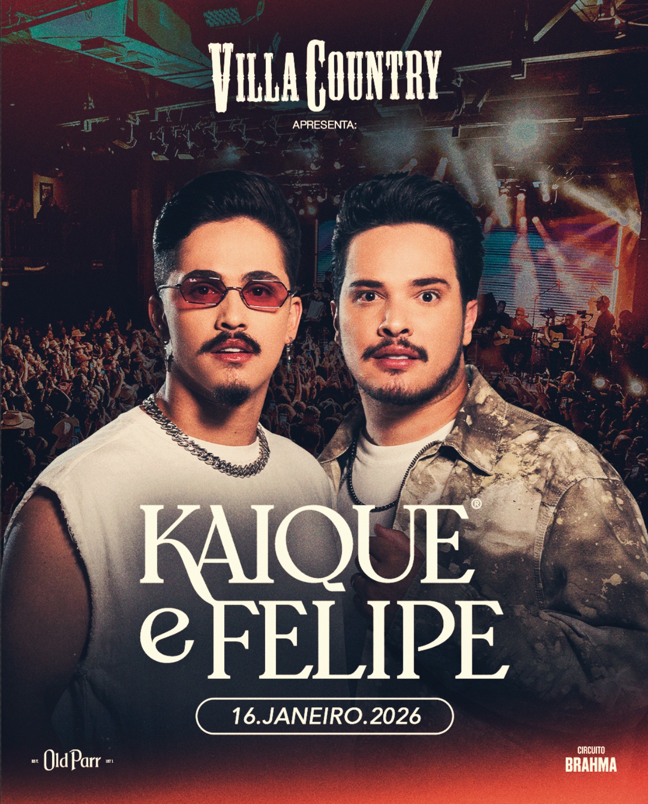 Para começar 2026 com o pé direito, o Villa Country vai receber em janeiro a dupla Kaique & Felipe — ou simplesmente KEF, como são conhecidos nas plataformas. A apresentação, nesta sexta-feira (16), representa tanto a consagração desse novo momento da dupla quanto uma oportunidade única para o público conferir ao vivo os hits que já circulam pelas plataformas com força. A dupla aproveita a data para comemorar com o público o lançamento do álbum "Ao Vivo nos Porta-Malas", que chega nesta quinta-feiras às plataformas de áudio. Ingressos disponíveis.