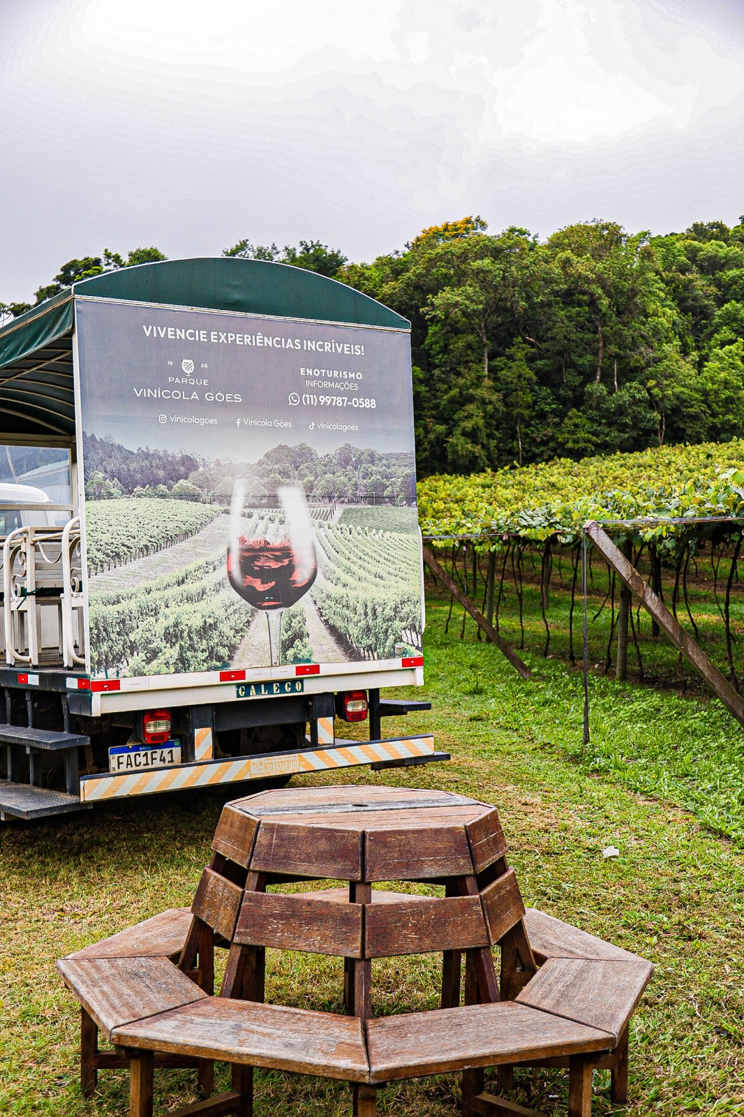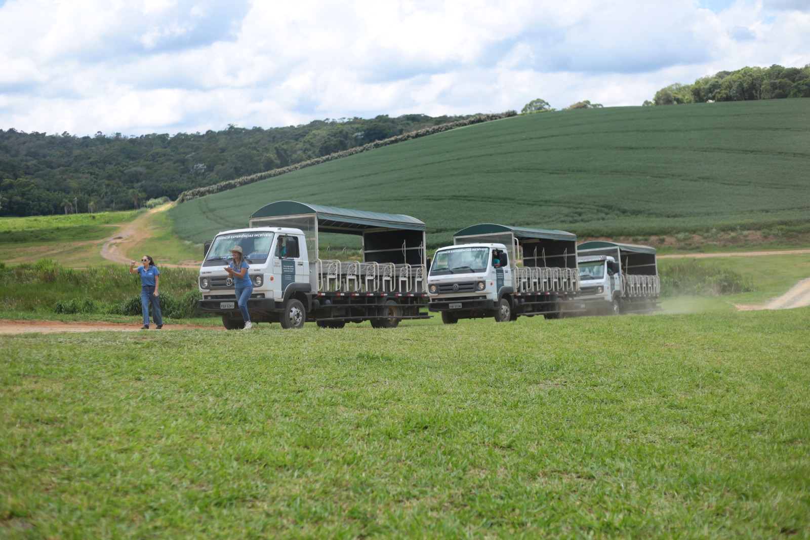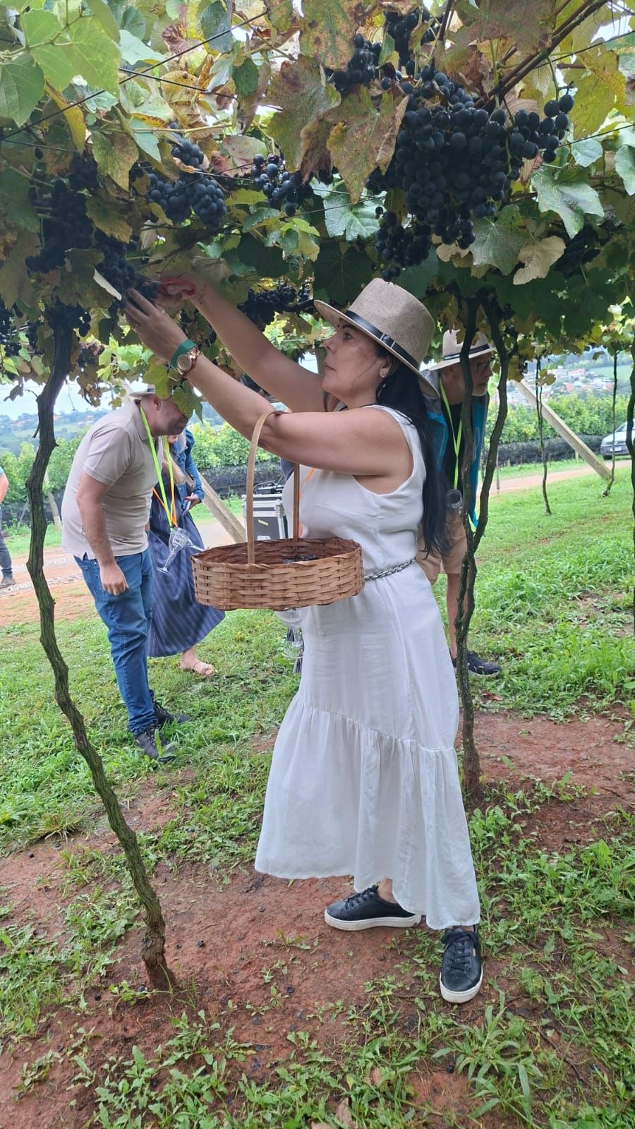 Durante o percurso, os visitantes participaram de uma recepção especial com aperitivos e degustações, seguidas de paradas estratégicas como o Deck dos Vinhedos, espaço com vista panorâmica dos parreirais da fazenda. O roteiro incluiu ainda a colheita das uvas, permitindo contato direto com o ciclo natural da videira e reforçando o caráter cultural do evento.