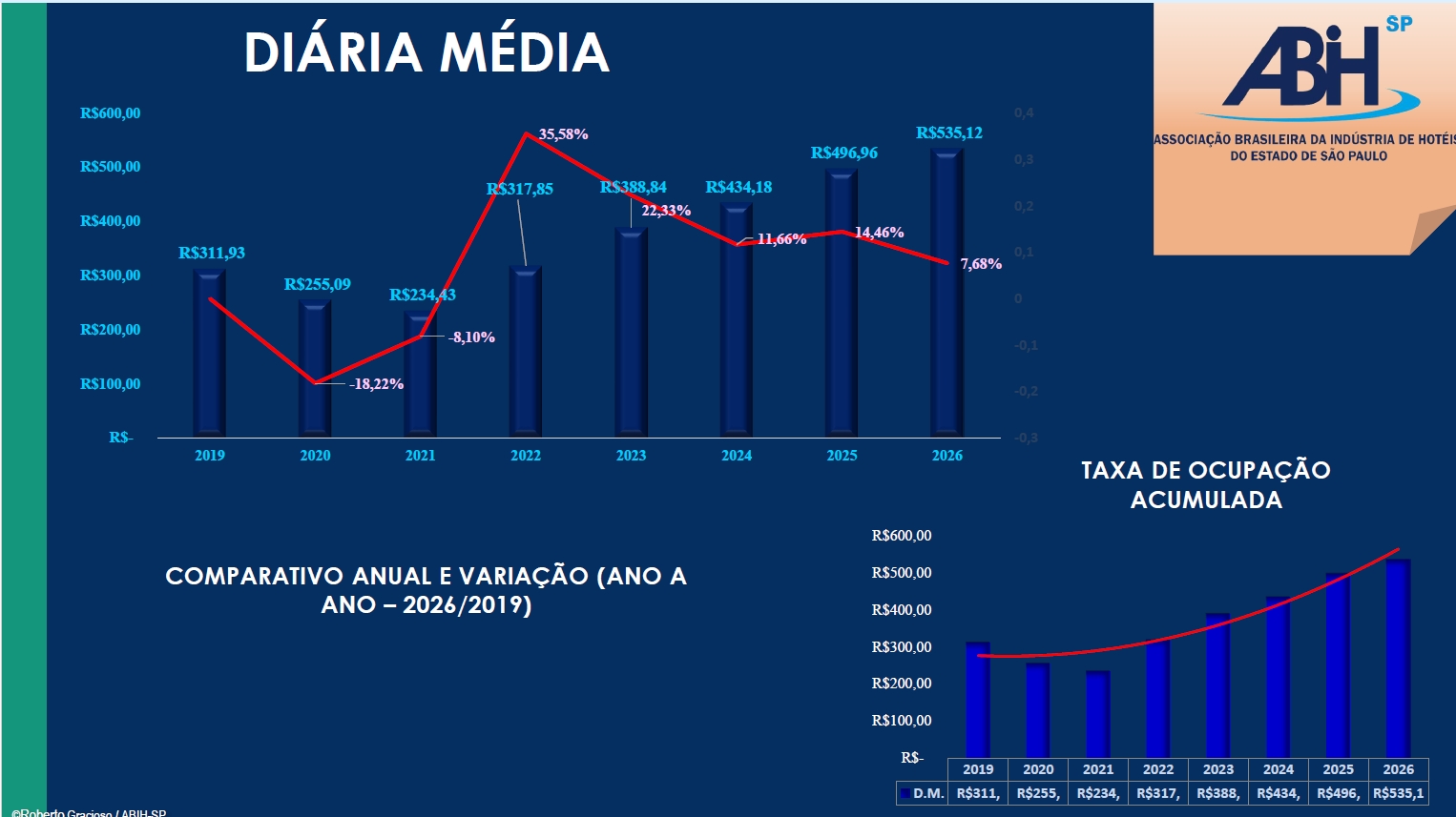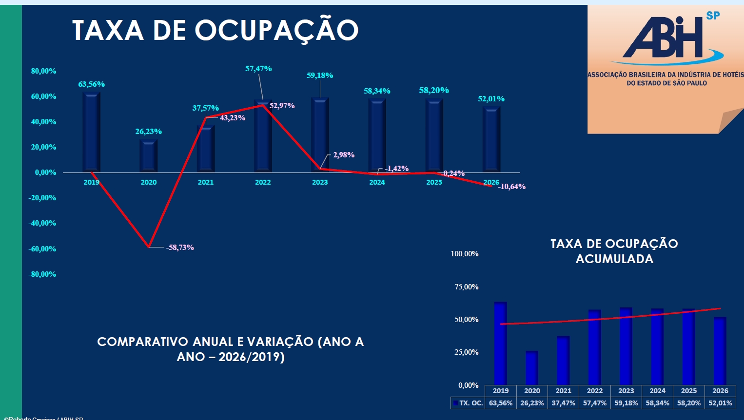 A 67ª edição da pesquisa de Desempenho da Hotelaria do Estado de São Paulo, referente a janeiro/26, apontou índices previsíveis
