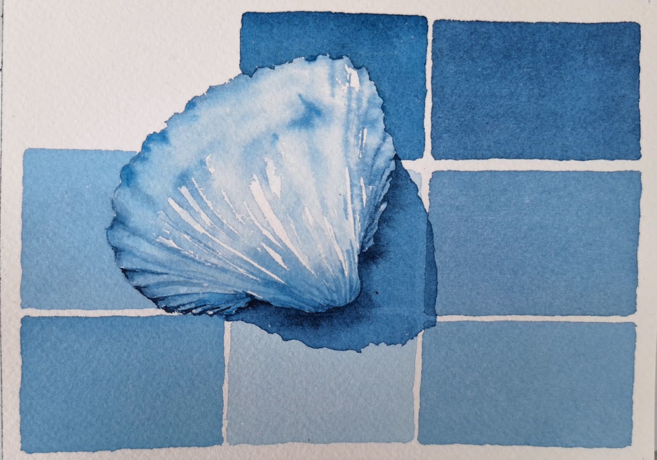 "O azul sempre atraiu meu olhar, sua presença reflete nos meus tubos de aquarela: Ciano, Índigo, Ultramarino, Cobalto, Prússia, Lápis Lazúli, ... Cada um, um mundo, uma percepção. AZUIS. Pensar em azul, não tem como não pensar na porcelana chinesa nos AZULejos portugueses, cuja herança marca uma das identidades visuais da cidade de São Luís do Maranhão, considerada a “Cidade dos Azulejos”, assim como em outras cidades brasileiras. Sensibilizada por essa estética do azulejo, surgem aquarelas em formato quadrado, em azul e branco, trazendo elementos da vegetação brasileira", explica Fátima Vollú.